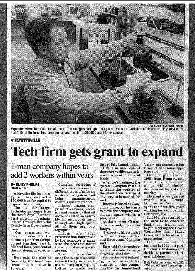 It all started in 2000. Thomas Campion was an engineering manager living just outside of Chambersburg, Pennsylvania. Beginnings of Integro TechnologiesIt was just before New Year’s Eve. He was having dinner at his favorite Chinese food restaurant, and there, among the pork fried rice and wonton soup, Integro Technologies was born.