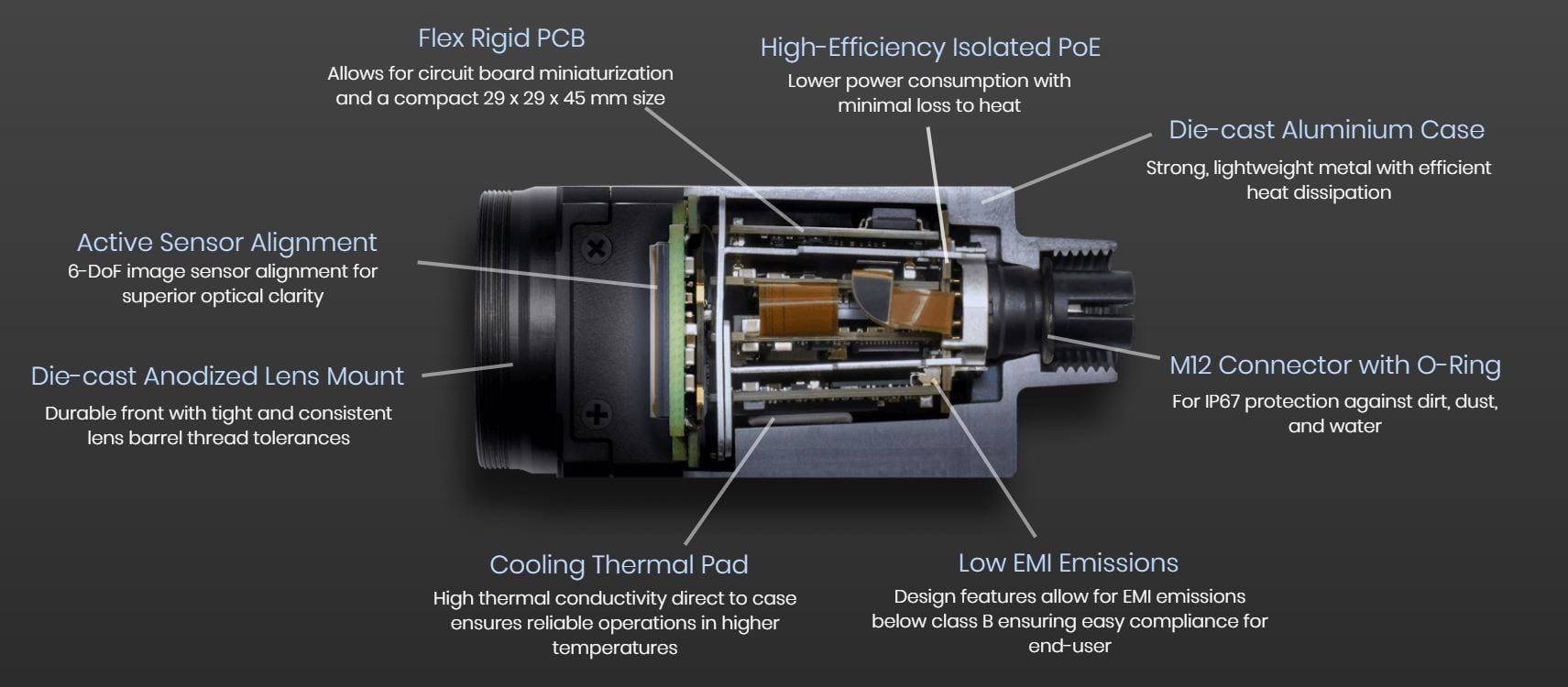 The Triton camera pushes the standard 29 x 29 mm machine vision camera to a new level.